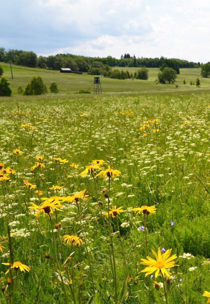 - Floristische Optimierung der Grünlandbewirtschaftung von ausgewählten Zielarten, wie z.B. Bärwurz, Arnika und Breitblättrigem Knabenkraut sowie weiteren gefährdeten Pflanzenarten wie der Holunderorchis (Holunder-Knabenkraut)